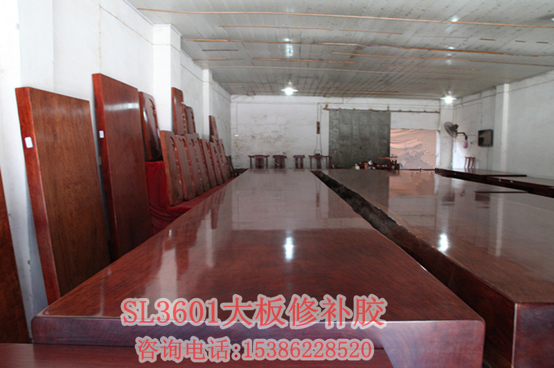 因為木材上面有的縫隙較小,所以要選用滲透力好的膠來修補它,但是現在有很多大板加工廠用的是502類似的水性膠,這種膠雖然固化時間短,但是耐老化情況不好,對于一顆成長了上百年歷史的原木來說要體現它的價值當然需要每一件都用好的材料來輔助它加工成為精品、藝術品,所以強烈給大家推薦SL3601透明裂縫膠這款膠顏色是完全透明的可以根據木材的顏色添加不同顏色的色粉;流動性非常好,特別適合細小裂縫的修補和灌注修補;