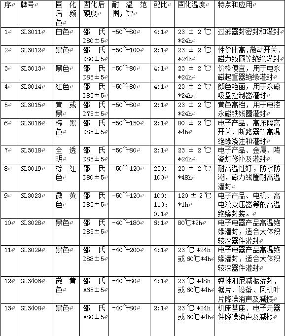 通過(guò)上表我們對(duì)于絕緣灌封膠的有了初步的了解,所以在做灌封膠的選擇時(shí)就會(huì)更懂得如何分辨,也知道耐溫等級(jí),以及固化后的硬度是關(guān)鍵,另外還要根據(jù)每個(gè)工廠實(shí)際的可以固化的操作工藝來(lái)選擇,如果不清楚也可以直接與世林的工程技術(shù)人員咨詢(xún):0731-28612221。