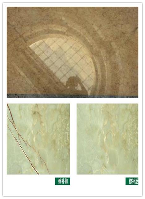 江西的盧總接到一個(gè)酒店地板保養(yǎng)翻新的工作,本以為是一件簡(jiǎn)單的清潔打磨的工作,結(jié)果到現(xiàn)場(chǎng)一看,傻眼了!大理石的地面、臺(tái)階跟柱面,很多因?yàn)楸pB(yǎng)不好,出現(xiàn)了裂縫,有的甚至斷裂開(kāi),臺(tái)階也都出現(xiàn)裂縫與斷裂,怎么辦?弄不好一分沒(méi)賺還要賠,趕緊上網(wǎng)搜石材裂縫修補(bǔ)膠,找到了株洲世林膠業(yè)SL3218透明裂縫修補(bǔ)膠。一看資料這款膠主要用于石材裂縫修補(bǔ),也可用于其它材料如金屬、木材、陶瓷及玻璃等粘接。本品為低粘度透明的雙組份膠粘劑,環(huán)氧樹(shù)脂為基體,改性胺為固化劑組成的。本品有以下特性:1.固化速度較快;2.和石材的附著力好;3.無(wú)色透明、光澤度較好、硬度高、適合淺色石板;4.粘度較低,滲透性好;5.操作方便; 6.耐磨、耐老化;7.有良好的耐候性、耐稀酸、耐稀堿、耐水;8.不含任何溶劑。9.無(wú)毒,環(huán)保。